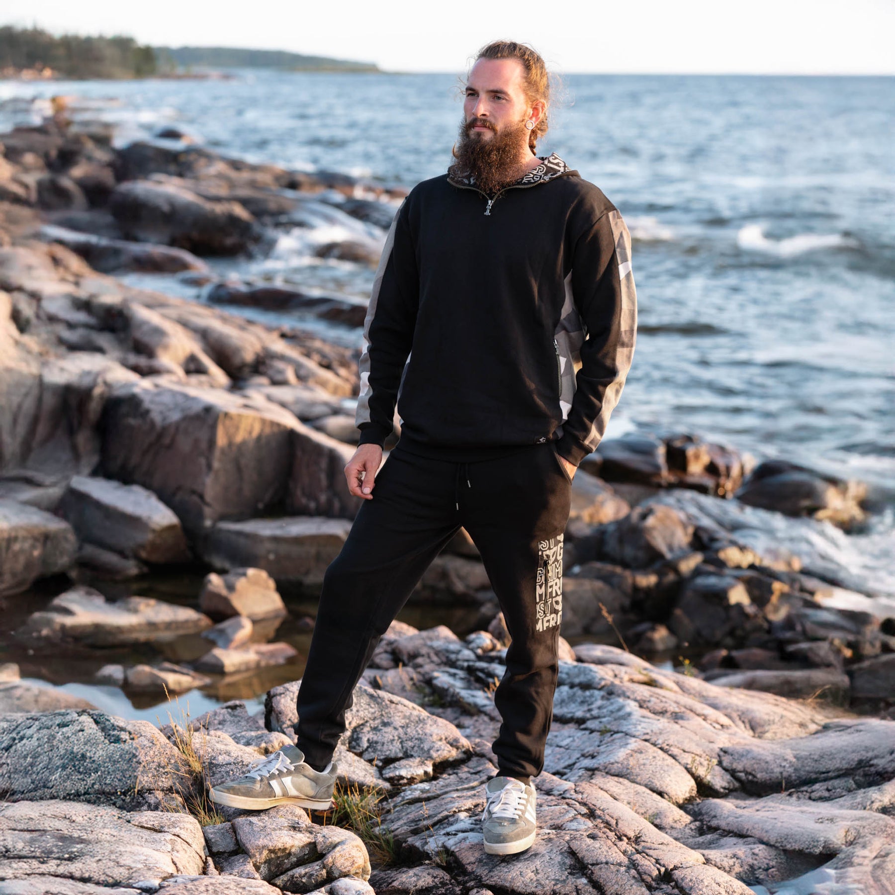 Comfortable sweatpants that come with a Grimfrost logos print on the left leg. To top things off, we've given the drawstring eyelets a Younger Futhark circle, as well as Thor's Hammer pullers to the pocket zippers.