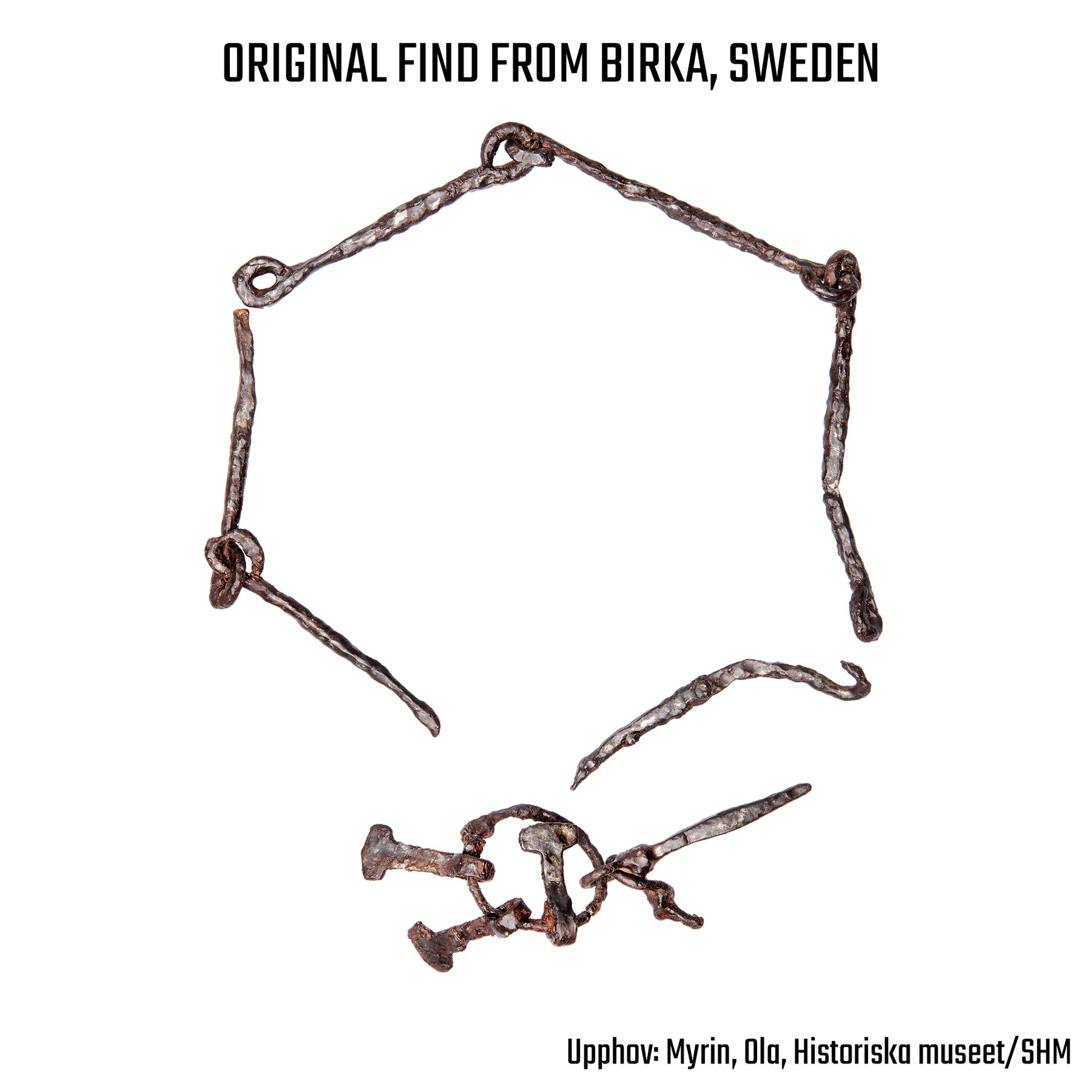 The measurements from the original find have been kept, but we've added two extra links to the chain - now totalling 9 instead of the original 7 - which makes it easier to slip over the head. The additional links can easily be removed to get an exact copy of the original find.