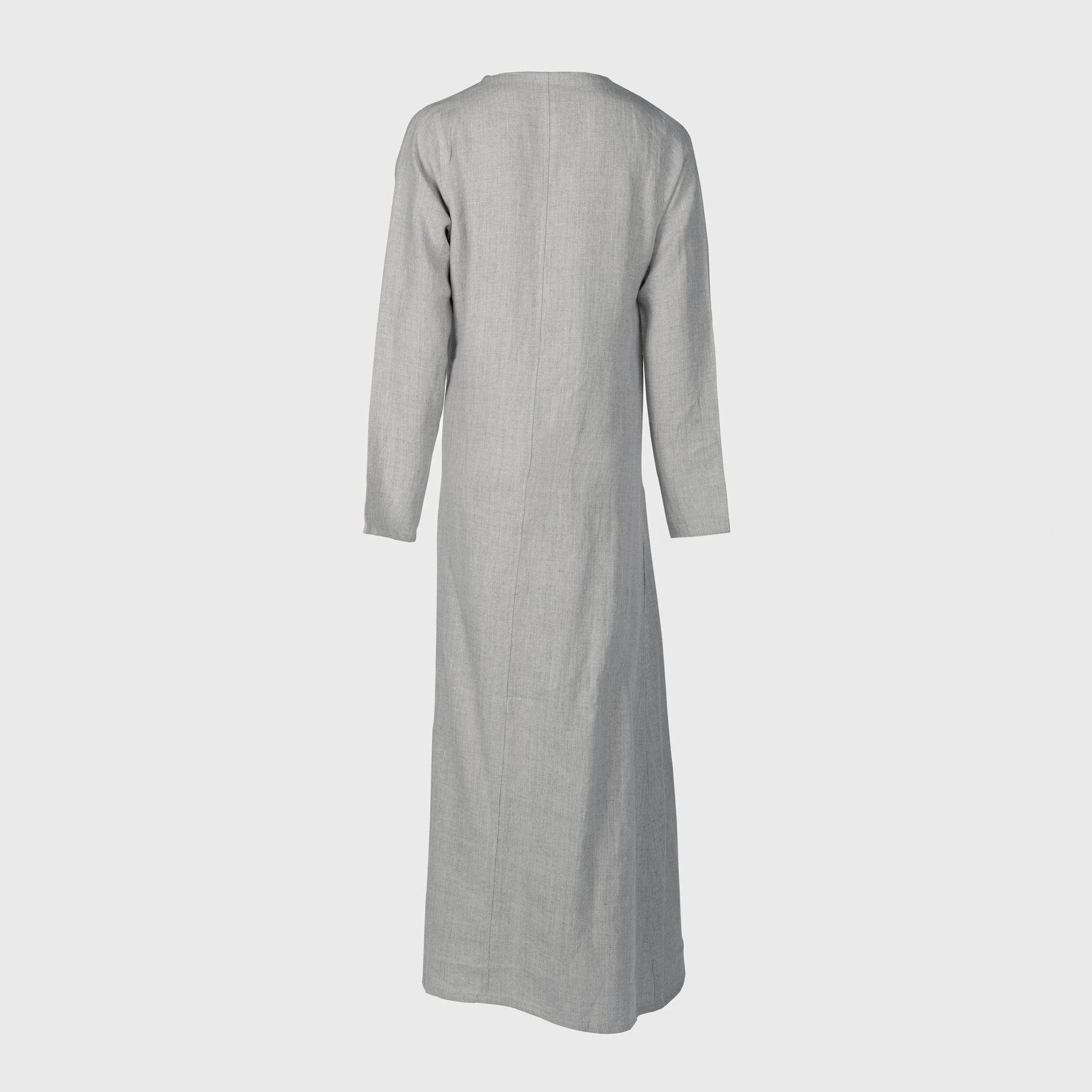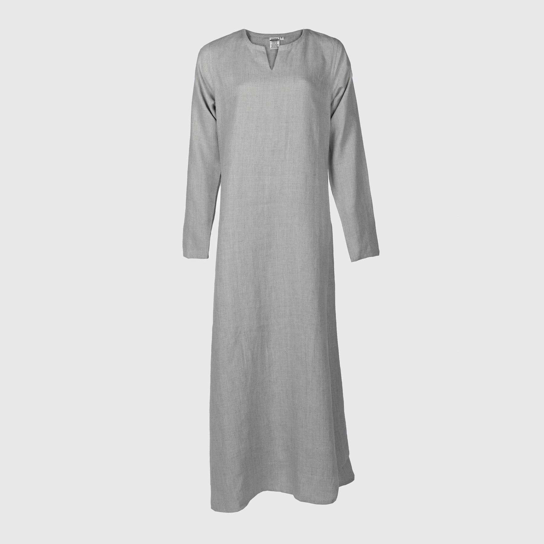 A comfortable linen dress based on historical sources. Undyed linen dresses were worn by most women during the Viking Age. This is evident in the 52 female graves in Birka, Sweden, that all contained fragments from undyed linen dresses. They were usually paired with an apron dress in dyed wool.
