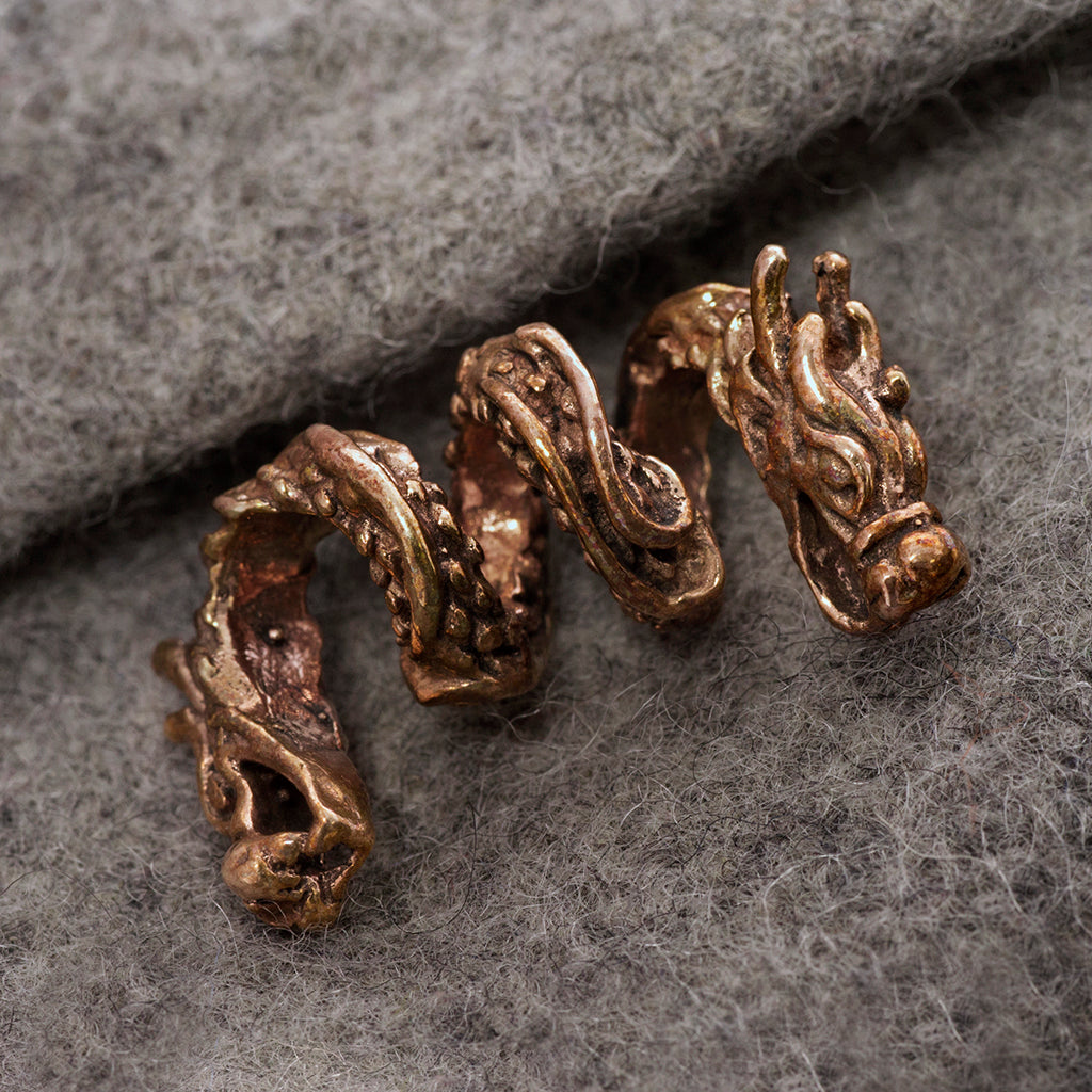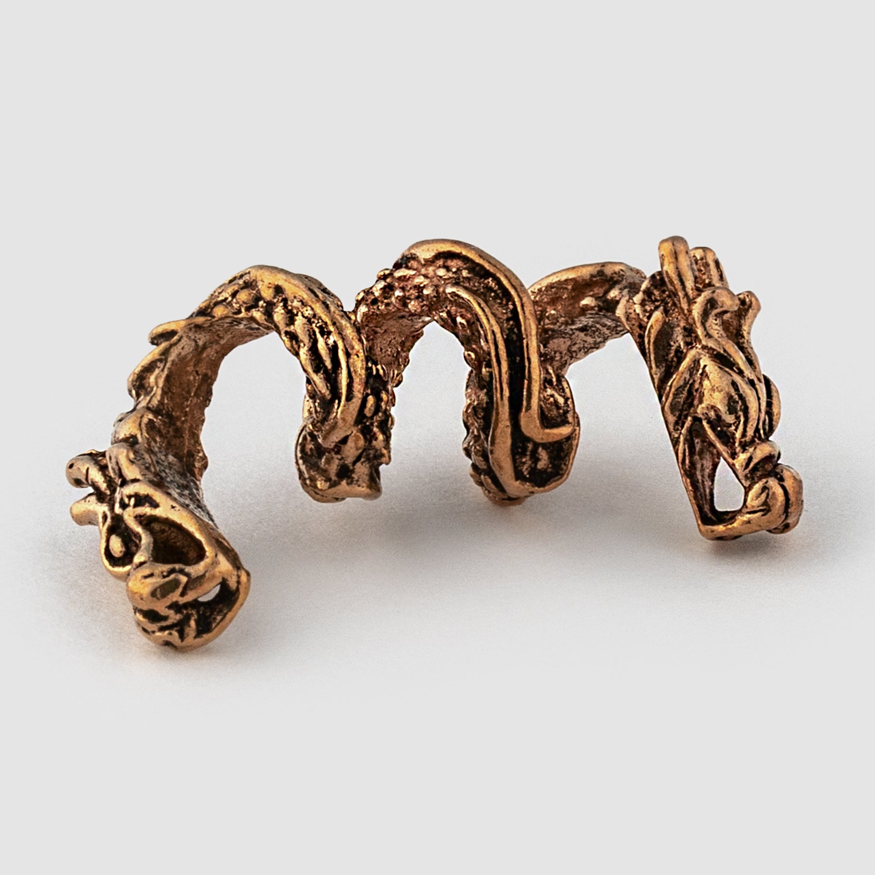 A bronze bead with Jörmungandr, the Midgard Serpent, wrapping itself around the beard.