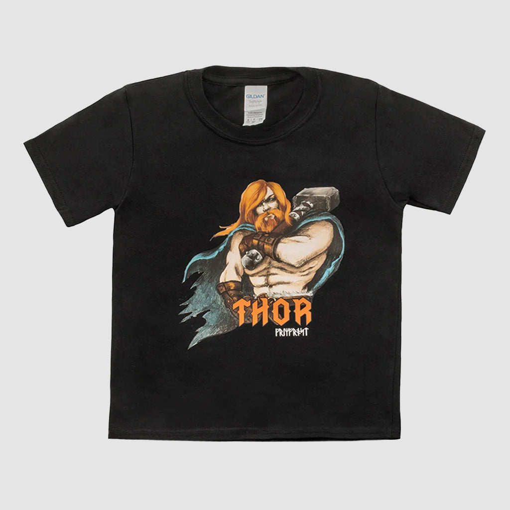 Hochwertiges T-Shirt für Kinder, handbedruckt in Schweden mit Thor.