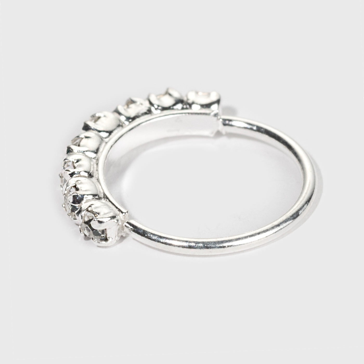 Eleganter Nasenring aus Sterlingsilber 925 mit 8 funkelnden Steinen. Leicht einzusetzen und angenehm zu tragen.