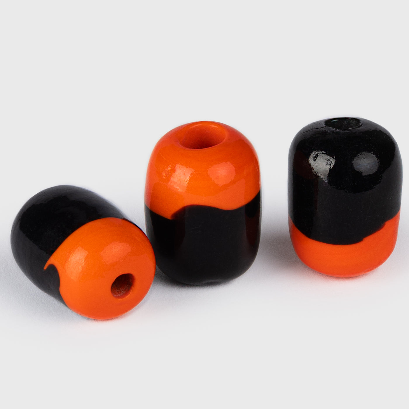 Drei Wikinger-Glasperlen. Sie wurden traditionell durch Aufwickeln von Schichten aus geschmolzenem Glas auf einen Metallstab hergestellt. Glasperlen wurden sowohl von Männern als auch von Frauen häufig für Halsketten verwendet. Frauen trugen sie auch zwischen Schalenfibeln hängend.