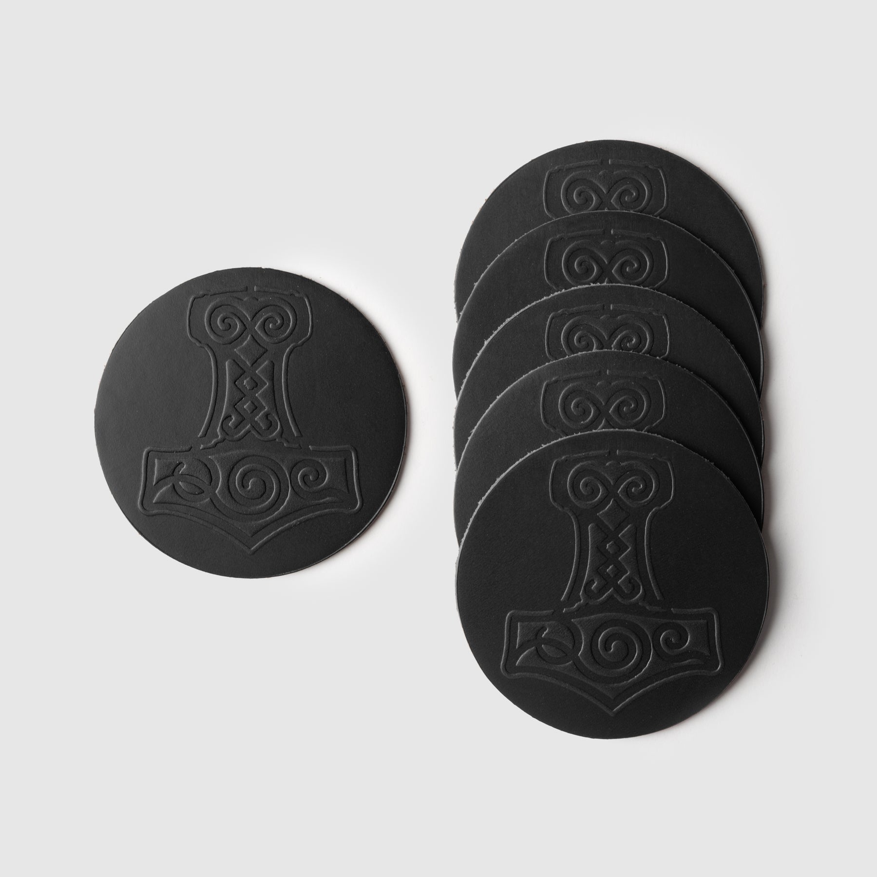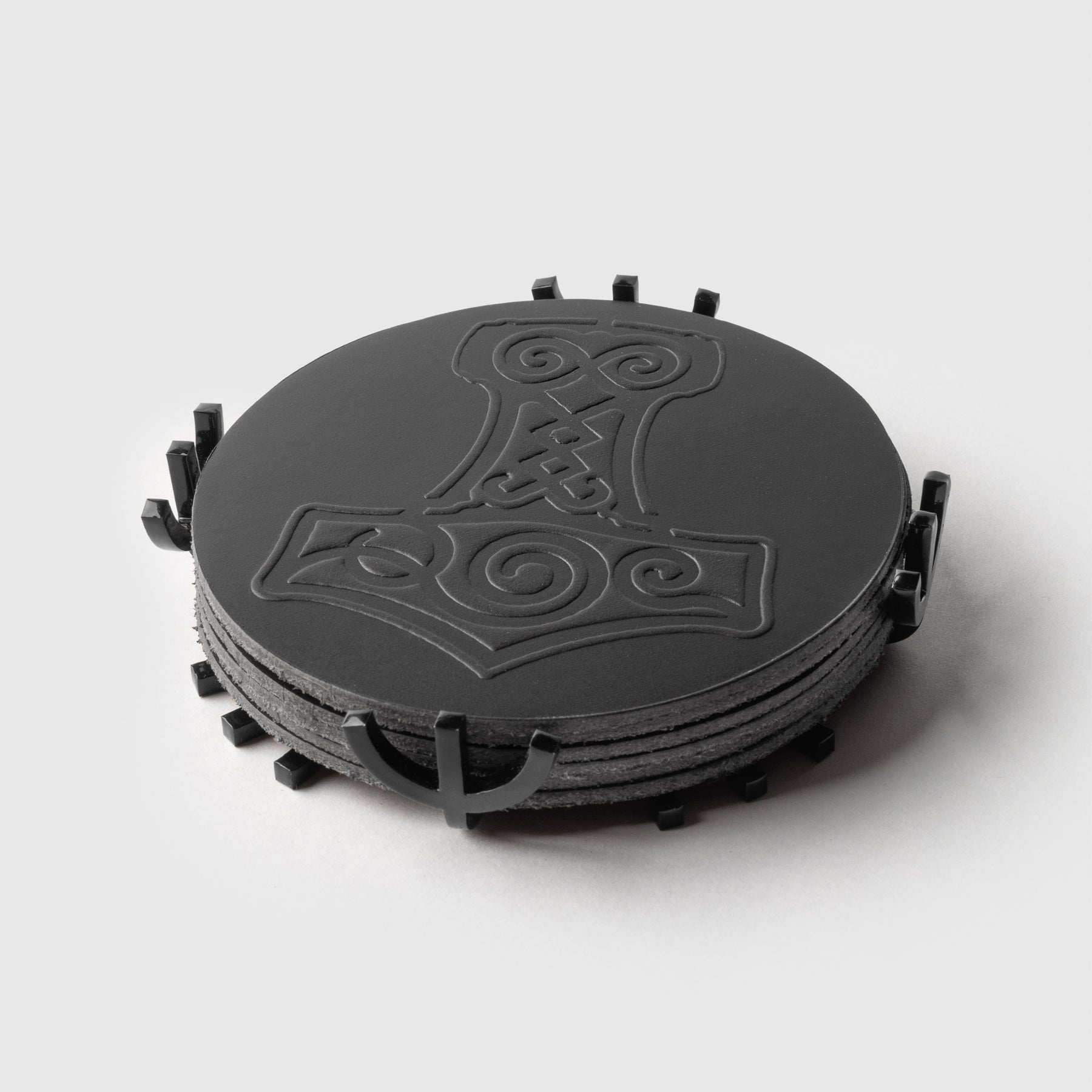 Mjolnir Coaster Set, Black Leather