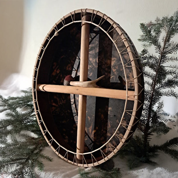 Traditional shaman drum that is carefully handmade in Finland, where old Nordic shamanic traditions have survived throughout the centuries. It has been crafted out of traditional materials without the use of any powertools. Only a handsaw, a knife and sandpaper has been used during the process. This crafting method takes time, but it is necessary if the drum is to have a spirit of its own.