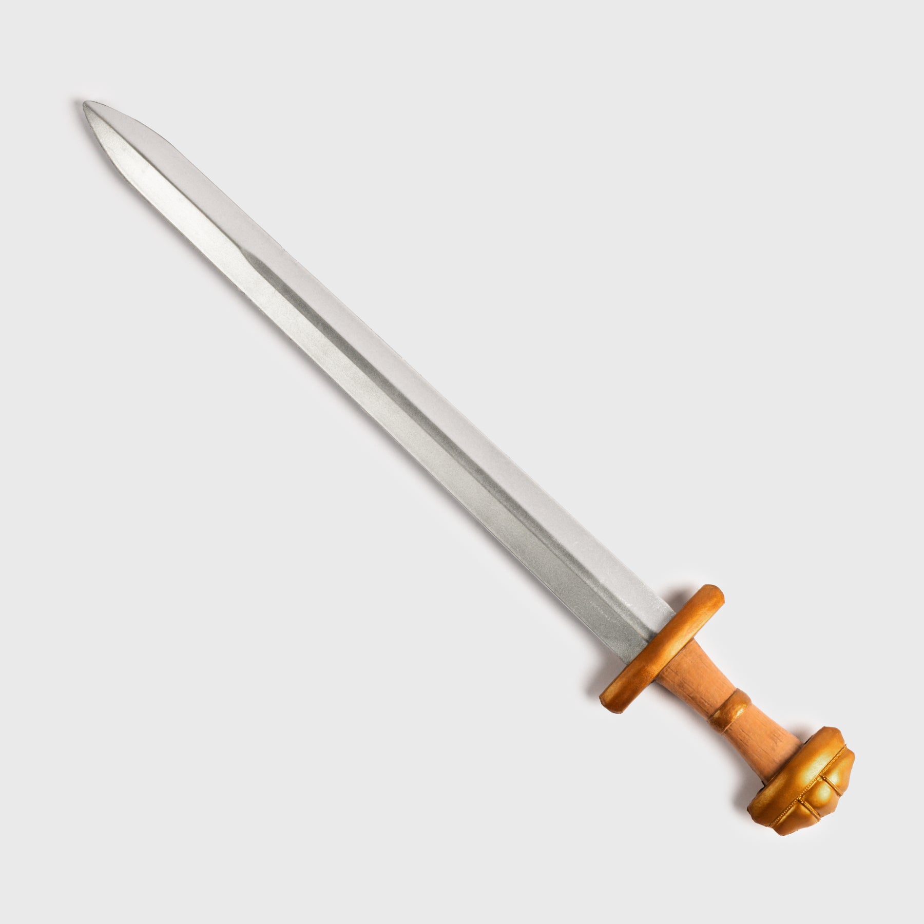 Small Viking sword in high density polyurethane foam material with a fiberglass core. The sword is perfect for battle training, LARP or costume play in places where real swords aren't allowed. Adult use only. Not a toy and not suitable for children under the age of 14.