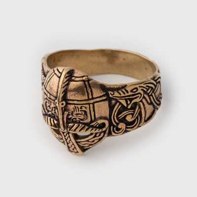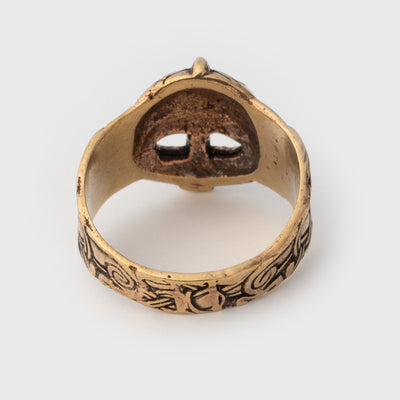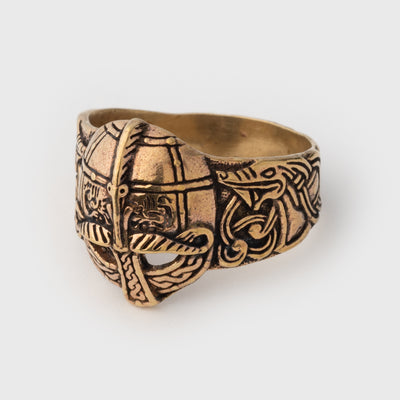 Prominent ring carefully made in bronze. Depicting the iconic Viking helmet, it's the perfect piece to wear to display your interest in all things Viking.