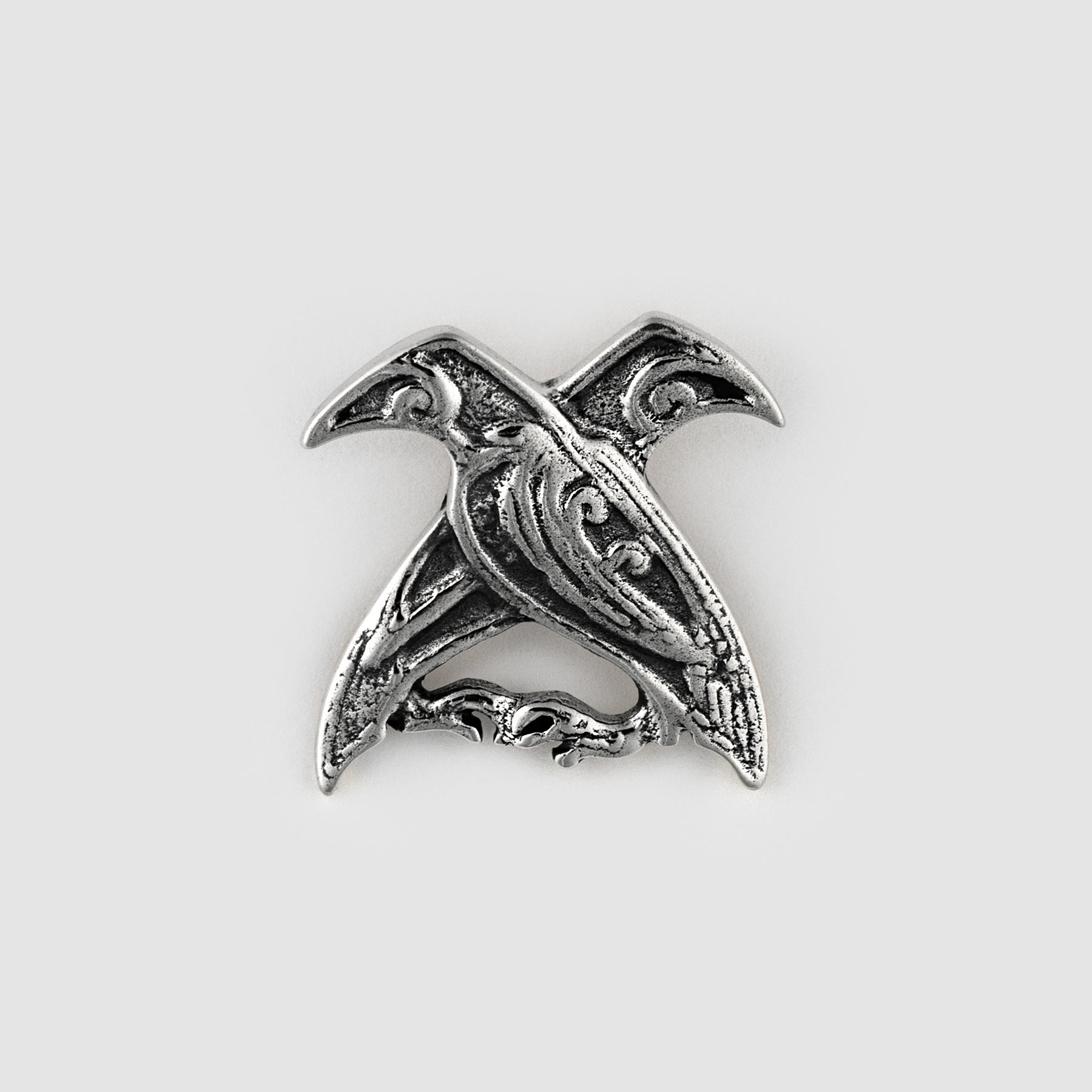 An amulet with Huginn and Muninn, the ravens of the god Odin. The back side is smooth.