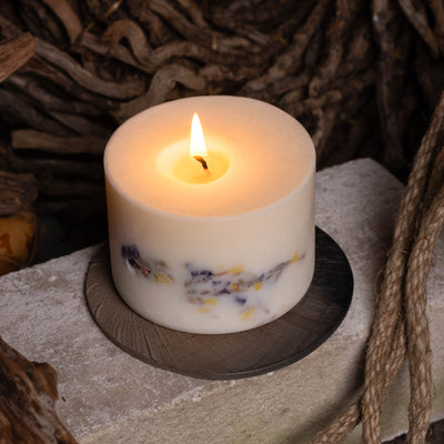 Smoked pottery clay candle holder – hand made, kiln fired and made to complement and display the simple elegance of our candles.