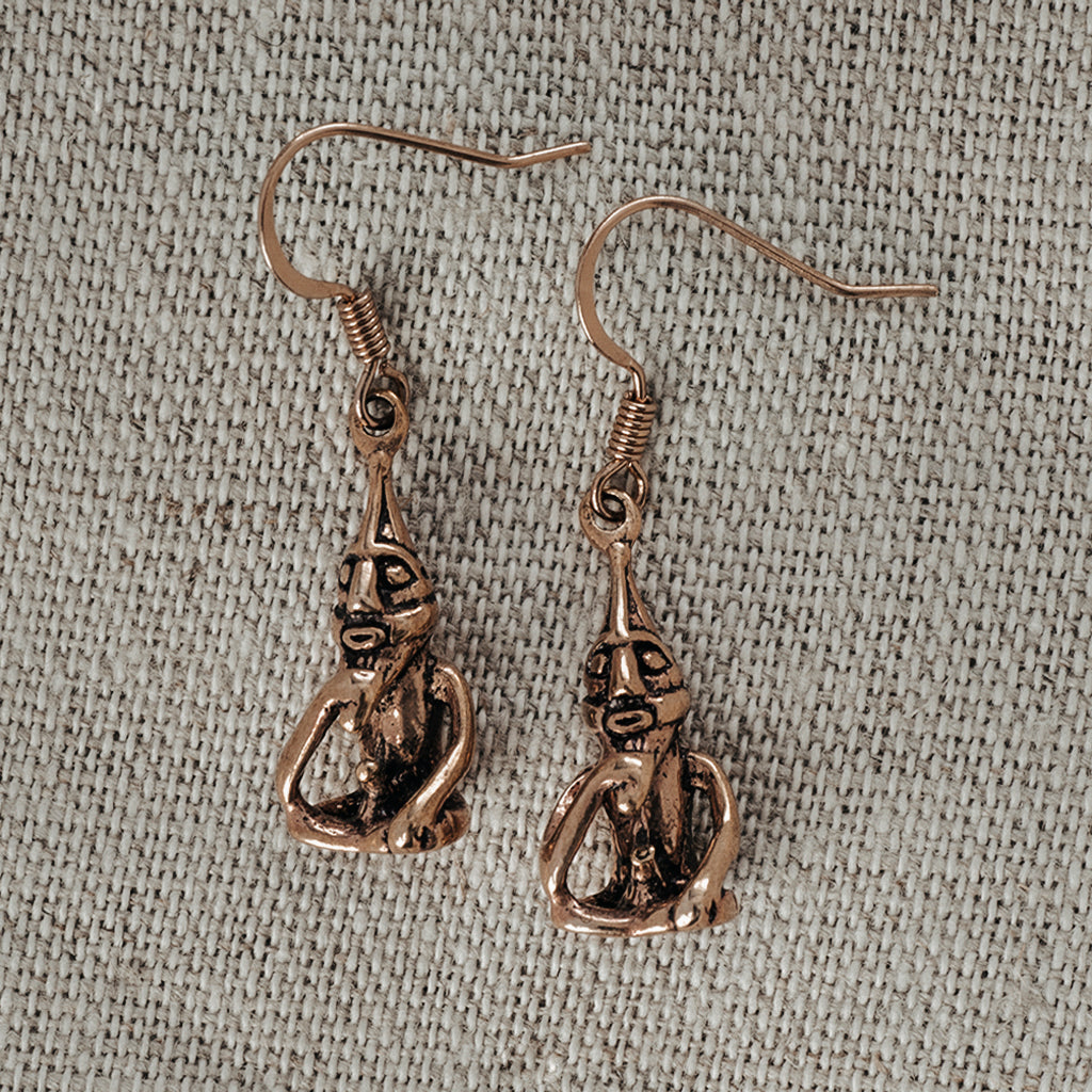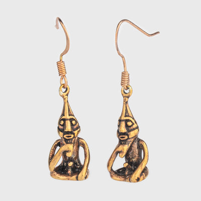 Carefully handmade earrings depicting Freyr, the Viking god. They are based on a find in Rällinge, Sweden. It should be mentioned that a phallic symbol is visible on the figures. Freyr was associated with sacral kingship, virility and prosperity, as well as with sunshine and fair weather, and was pictured as a phallic fertility god. It was said that Freyr "bestows peace and pleasure on mortals".