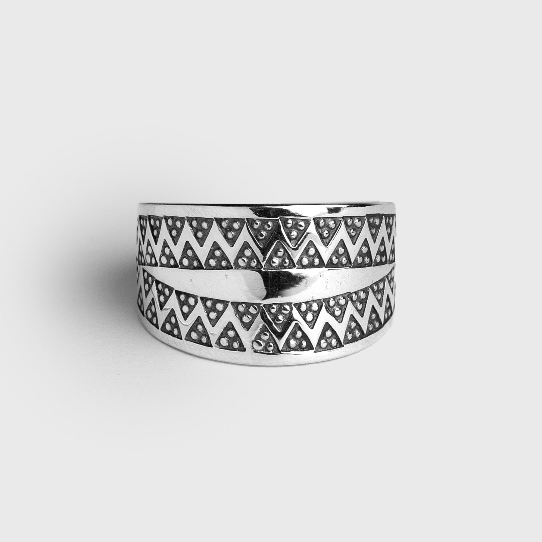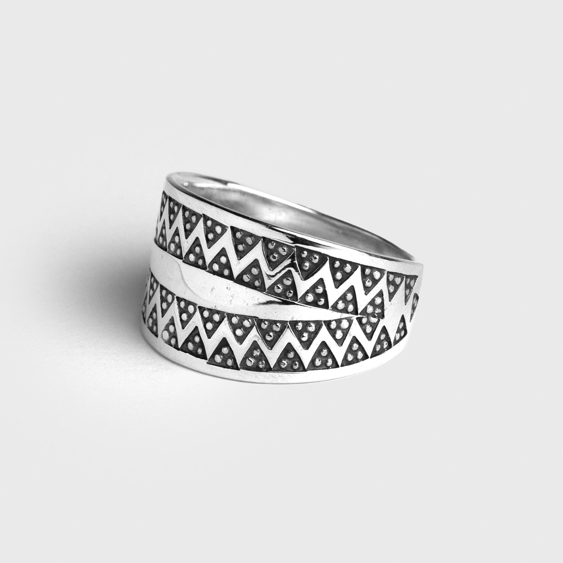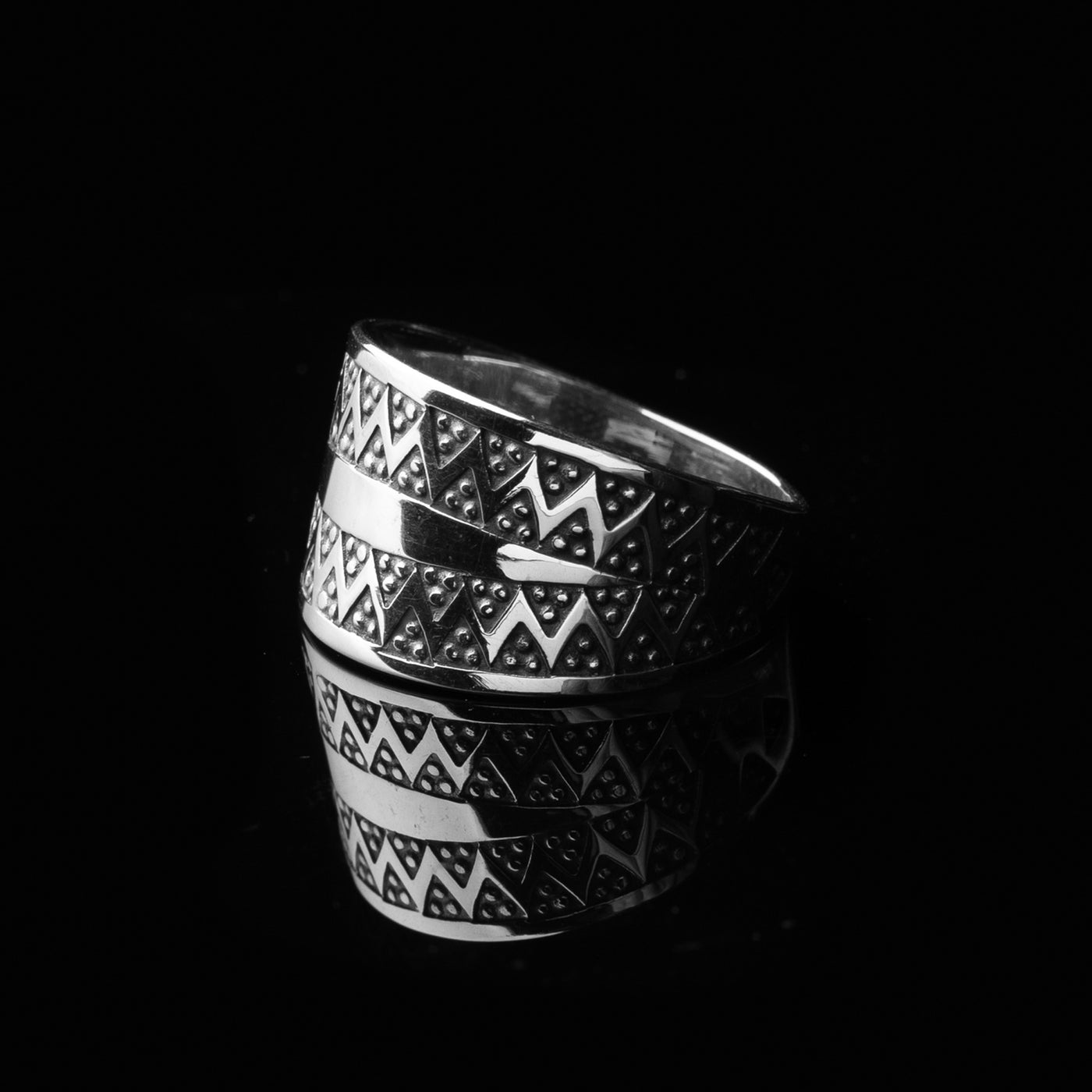 A faithful and carefully handmade replica of the Viking Age ring found on the island of Gotland in Sweden. The ring has been handmade in Sterling Silver according to ancient Viking silversmithing techniques with scrupulous attention to details. The ring is first hand forged, after which it is decorated through punching every single detail on it by hand with a stamp and hammer.