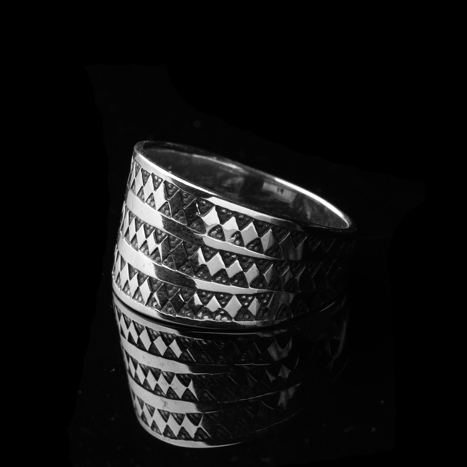 A faithful and carefully handmade replica of the Viking Age ring found on the island of Gotland in Sweden. The ring has been handmade in Sterling Silver according to ancient Viking silversmithing techniques with scrupulous attention to details. The ring is first hand forged, after which it is decorated through punching every single detail on it by hand with a stamp and hammer.