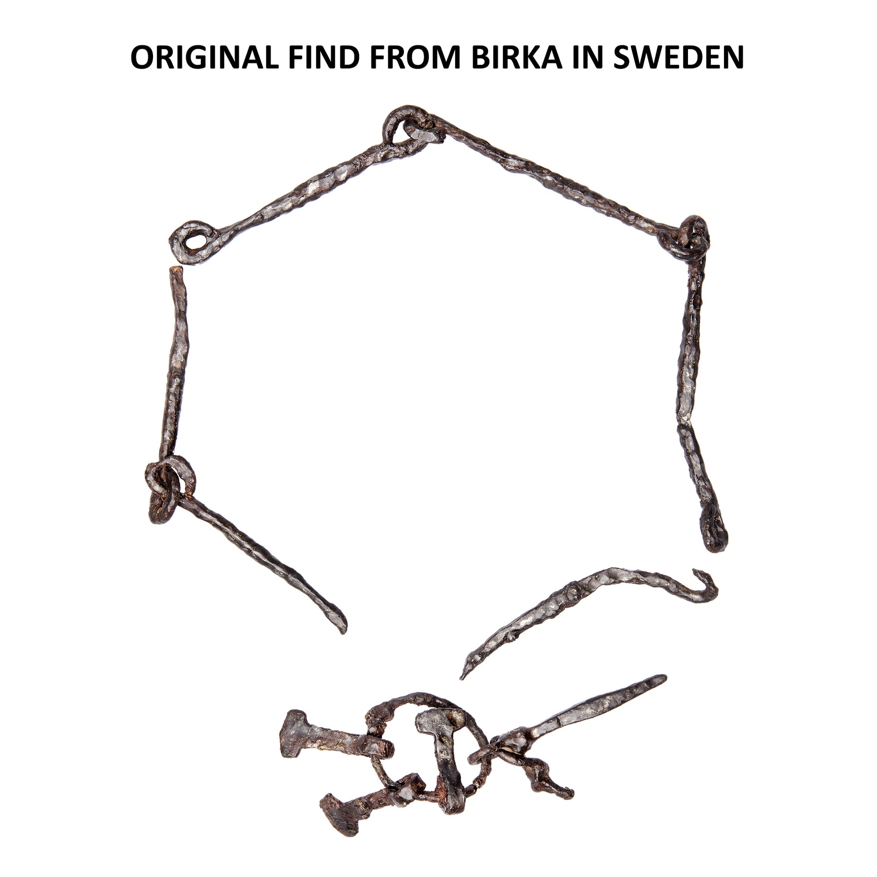 The measurements from the original find have been kept, but we've added two extra links to the chain - now totalling 9 instead of the original 7 - which makes it easier to slip over the head. The additional links can easily be removed to get an exact copy of the original find.